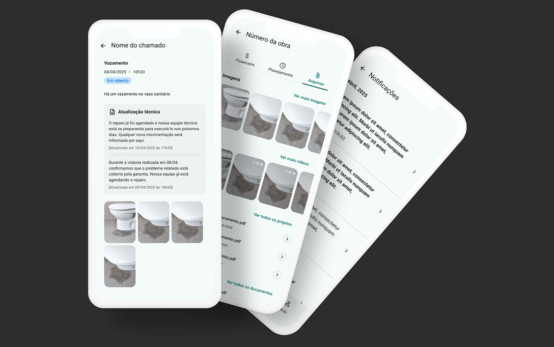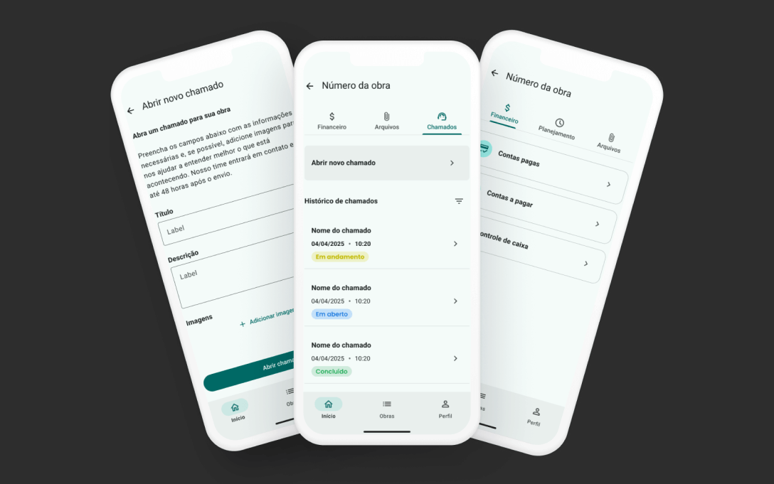 Centralize documentos, financeiro, chamados e evolução da obra em um ambiente seguro e profissional.